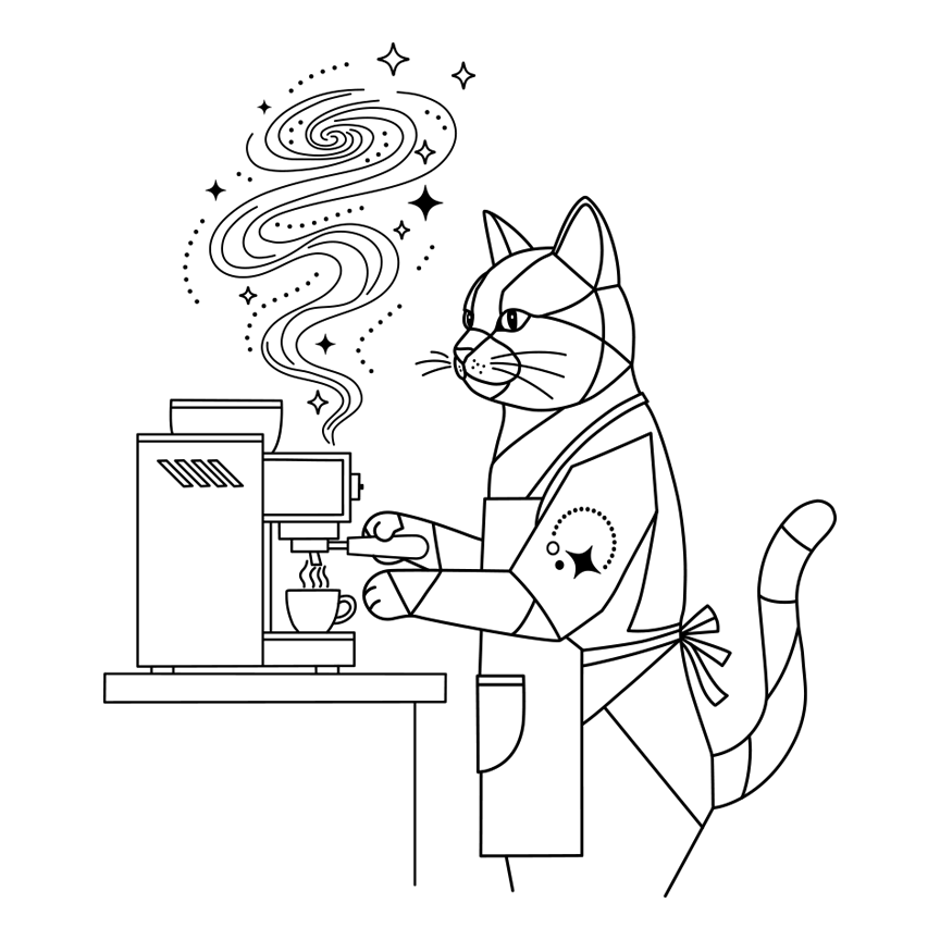 Discover celestial comfort with our enchanting "Cosmo Cat Coffee Shop" digital printable. This whimsical black-and-white illustration captures a serene feline enjoying a cosmic brew in a charming cafe, inviting moments of peaceful reflection and stellar relaxation into your space.